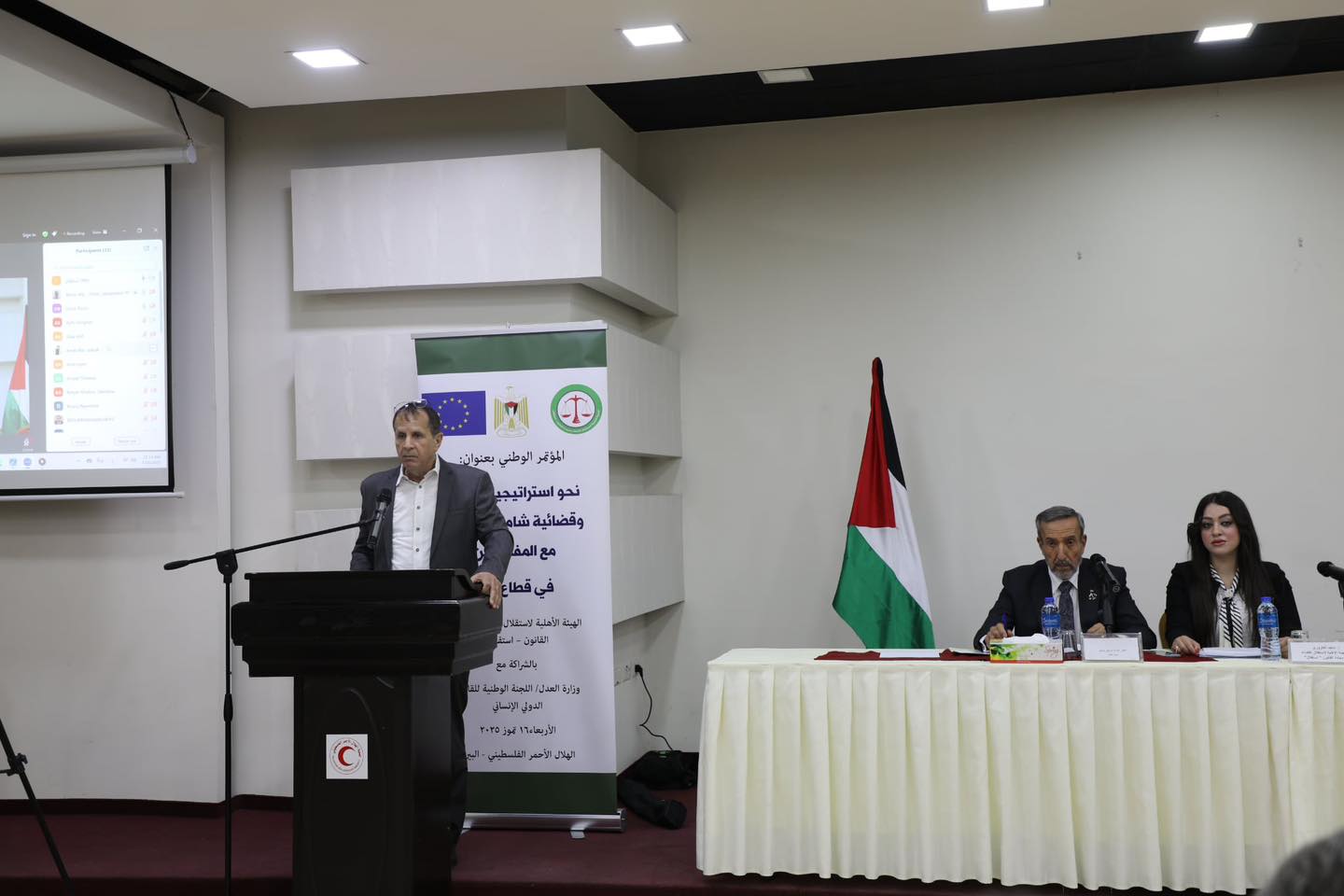 جاء ذلك خلال فعاليات مؤتمر وطني بعنوان "نحو استراتيجية وطنية وقضائية شاملة للتعامل مع المفقودين في حرب الإبادة في قطاع غزة"، والذي عقد في جمعية الهلال الأحمر بمدينة البيرة، بتنظيم من الهيئة الأهلية لاستقلال المحاماة والقضاء وسيادة القانون "استقلال"، وبالشراكة مع وزارة العدل- اللجنة الوطنية للقانون الدولي الإنساني.