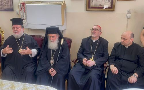 وطالب البطريرك ثيوفيلوس الثالث بوقفٍ فوري وشامل ودائم لإطلاق النار، داعيا المجتمع الدولي إلى تحمل مسؤولياته الأخلاقية والإنسانية تجاه المدنيين الأبرياء، الذين يدفعون ثمنًا باهظًا في عدوان لا يرحم.