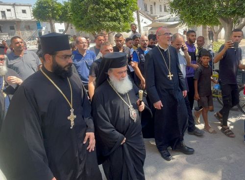 رام الله 18-7-2025 وفا- توجه بطريرك المدينة المقدسة وسائر أعمال فلسطين والأردن ثيوفيلوس الثالث، وبطريرك اللاتين في القدس الكاردينال بييرباتيستا بيتسابالا، بمرافقة وفد كنسي، اليوم الجمعة إلى قطاع غزة في زيارة رعوية وإنسانية.