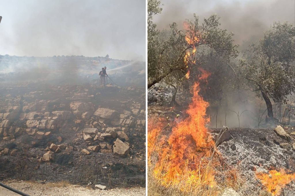 المستعمرون يشعلون الأرض جنوب نابلس