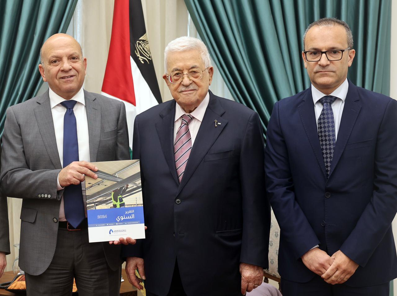 رام الله 21-7-2025 وفا- تسلّم رئيس دولة فلسطين محمود عباس، اليوم الاثنين، التقرير السنوي للعام 2024 لصندوق الاستثمار الفلسطيني، وذلك خلال استقباله رئيس مجلس إدارة الصندوق إياد جودة، والمدير العام عبد الحميد العبوة.