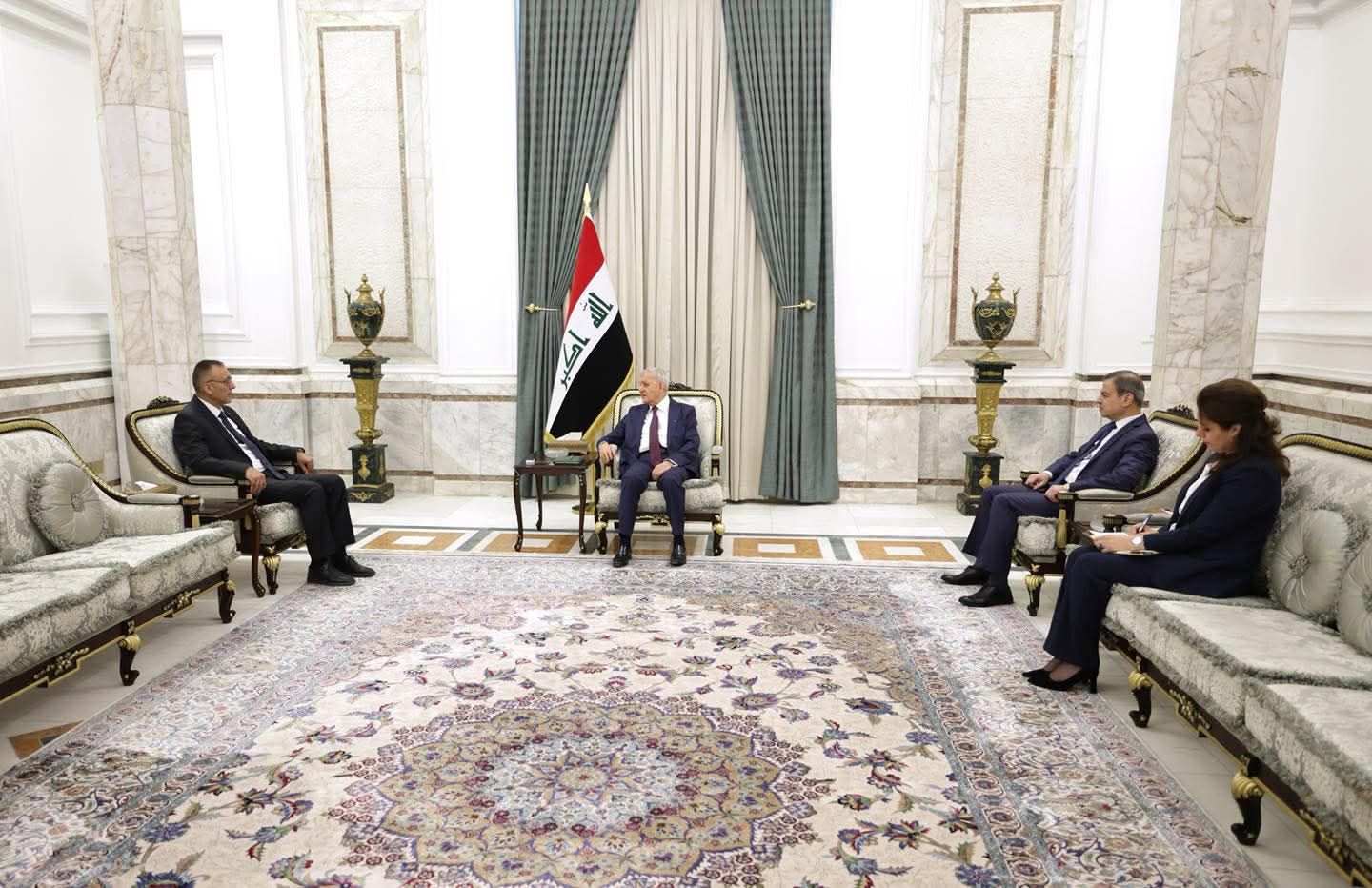 وشدد الرئيس العراقي خلال لقائه سفير دولة فلسطين أحمد الرويضي، في قصر بغداد، على ضرورة العمل على إدخال المساعدات الإنسانية والطبية والغذائية إلى المواطنين، بالشكل الذي يُؤمّن احتياجاتهم.