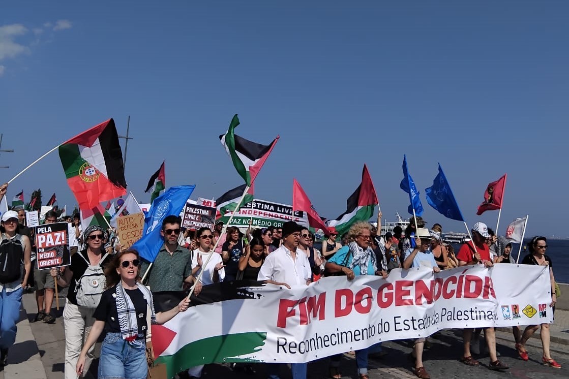ودعا المشاركون، إلى إنهاء الإبادة الجماعية التي ترتكبها إسرائيل، القوة القائمة بالاحتلال، بحق الفلسطينيين، والاعتراف الرسمي من حكومة البرتغال بدولة فلسطين.