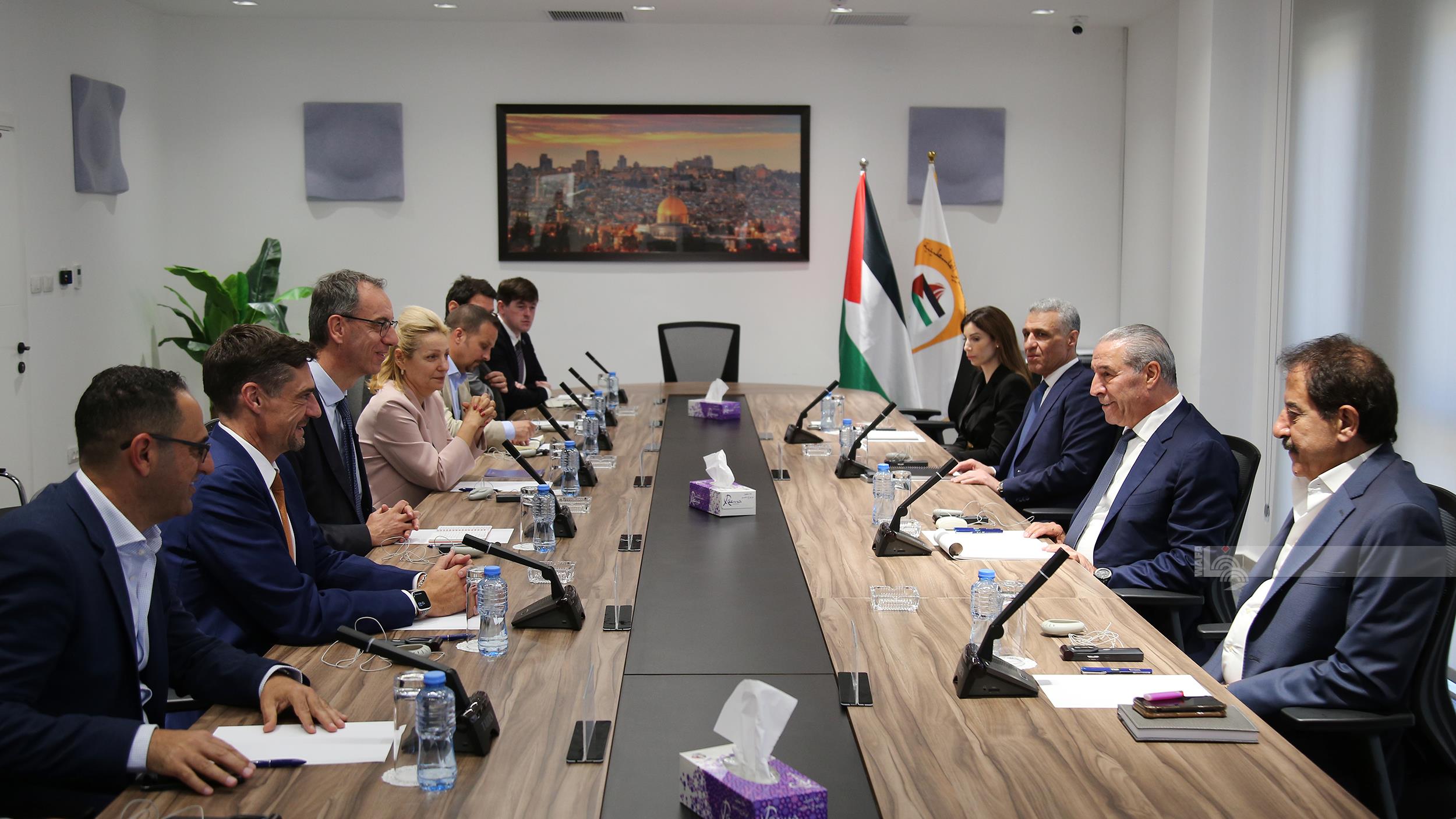 رام الله 8-7-2025 وفا- استقبل نائب رئيس دولة فلسطين، نائب رئيس اللجنة التنفيذية لمنظمة التحرير الفلسطينية، حسين الشيخ، في مكتبه بمدينة رام الله، اليوم الثلاثاء، وفدا من بعثة المساعدات الحدودية للاتحاد الأوروبي، ممثلا برئيسة بعثة الاتحاد الأوروبي للمساعدة الحدودية ناتاليا أبو ستولولفا، وقائد العمليات المدنية في مقر البعثة ببروكسل ستيفانو تومات، وممثل الاتحاد الأوروبي في فلسطين ألكسندر ستوتزمان، والوفد المرافق لهم، بحضور رئيس هيئة الشؤون المدنية أيمن قنديل، ومدير عام الإدارة العامة للمعابر والحدود نظمي مهنا.