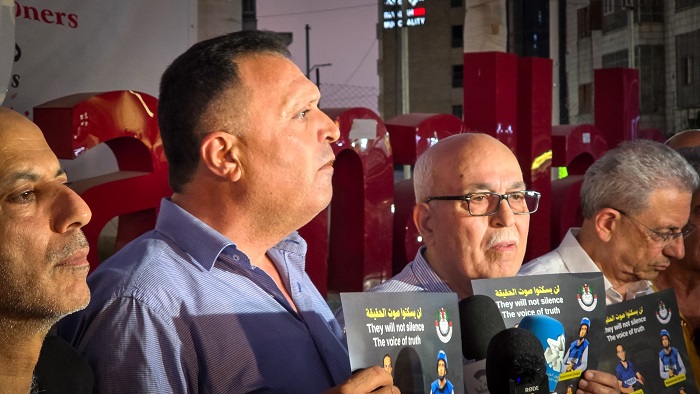 نقابة الصحفيين تنظم وقفة في رام الله تنديدا بمجزرة استهداف الصحفيين بمستشفى الشفاء