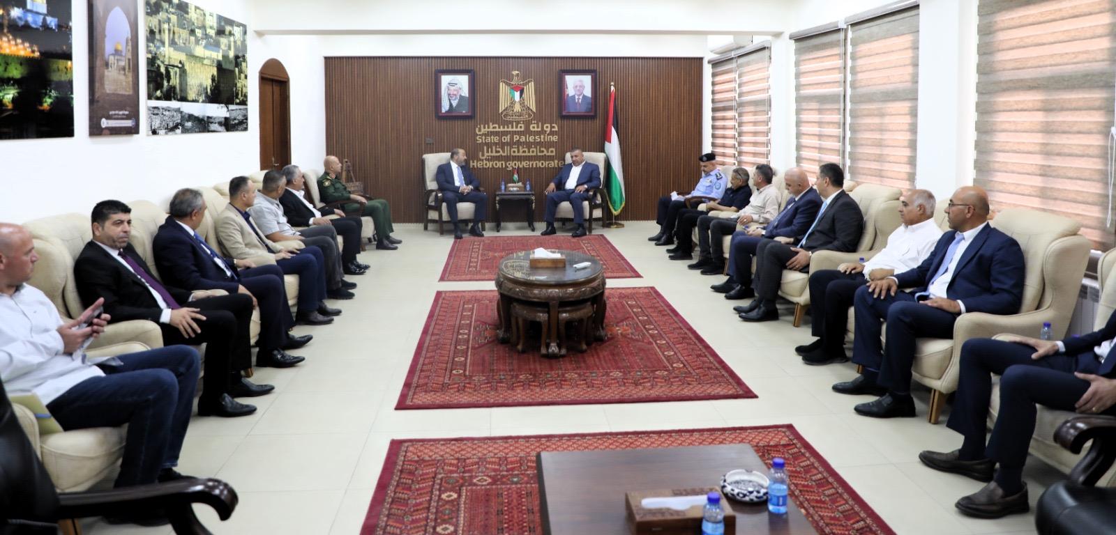 والتقى النائب العام مع محافظ الخليل خالد دودين، بحضور قادة الأجهزة الأمنية وممثلي عدد من المؤسسات الرسمية، لبحث آليات تعزيز سيادة القانون والتعاون المشترك لمواجهة التحديات الأمنية والاجتماعية والاقتصادية في المحافظة.