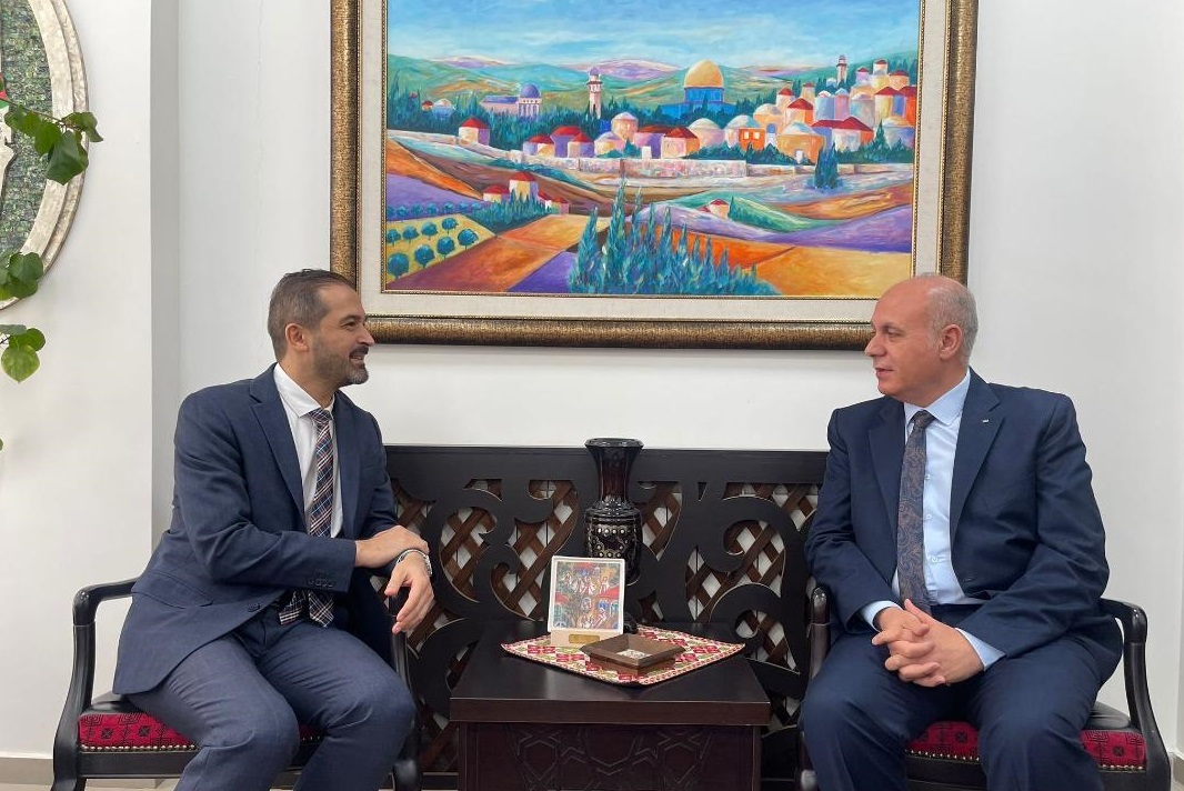 رام الله 17-8-2025 وفا- بحث وزير الثقافة عماد حمدان مع مدير مكتب الوكالة التركية للتعاون والتنسيق (تيكا) في فلسطين، أورهان آيدن، اليوم الأحد، آليات تعزيز التعاون الثقافي المشترك، وأهمية دعم الأنشطة الثقافية والمثقفين في فلسطين.