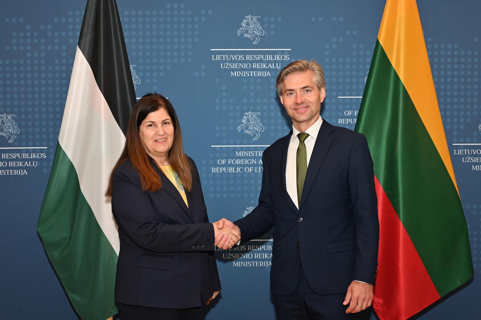 وجاء ذلك بحضور سفير دولة فلسطين لدى ليتوانيا تيسير العجوري، ومدير قطاع الشؤون الأوروبية عادل عطية، وسكرتير ثانٍ ومدير مكتب الوزيرة عميد عبد الرحيم، وسكرتير ثانٍ جورجي عناب.