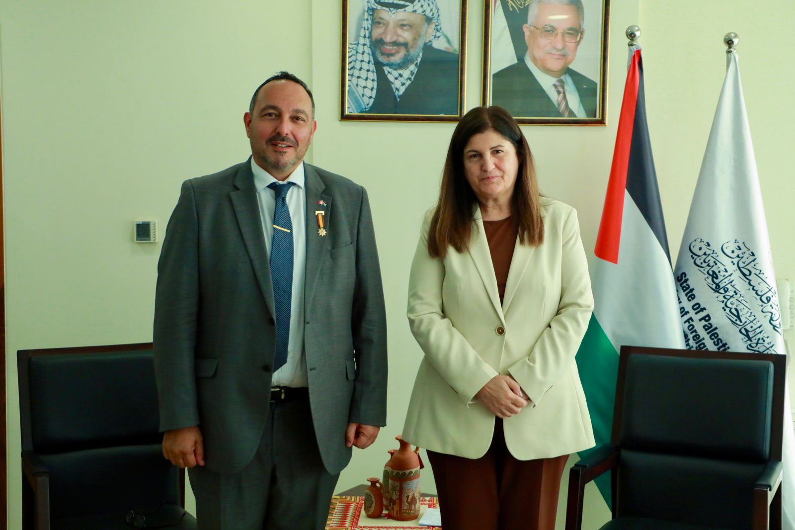 رام الله 6-8-2025 وفا- ودعت وزيرة الخارجية والمغتربين فارسين شاهين، اليوم الأربعاء، رئيس مكتب تمثيل جمهورية مالطا لدى دولة فلسطين السفير فرانكلين أكويلينا، لمناسبة انتهاء مهامه الرسمية.