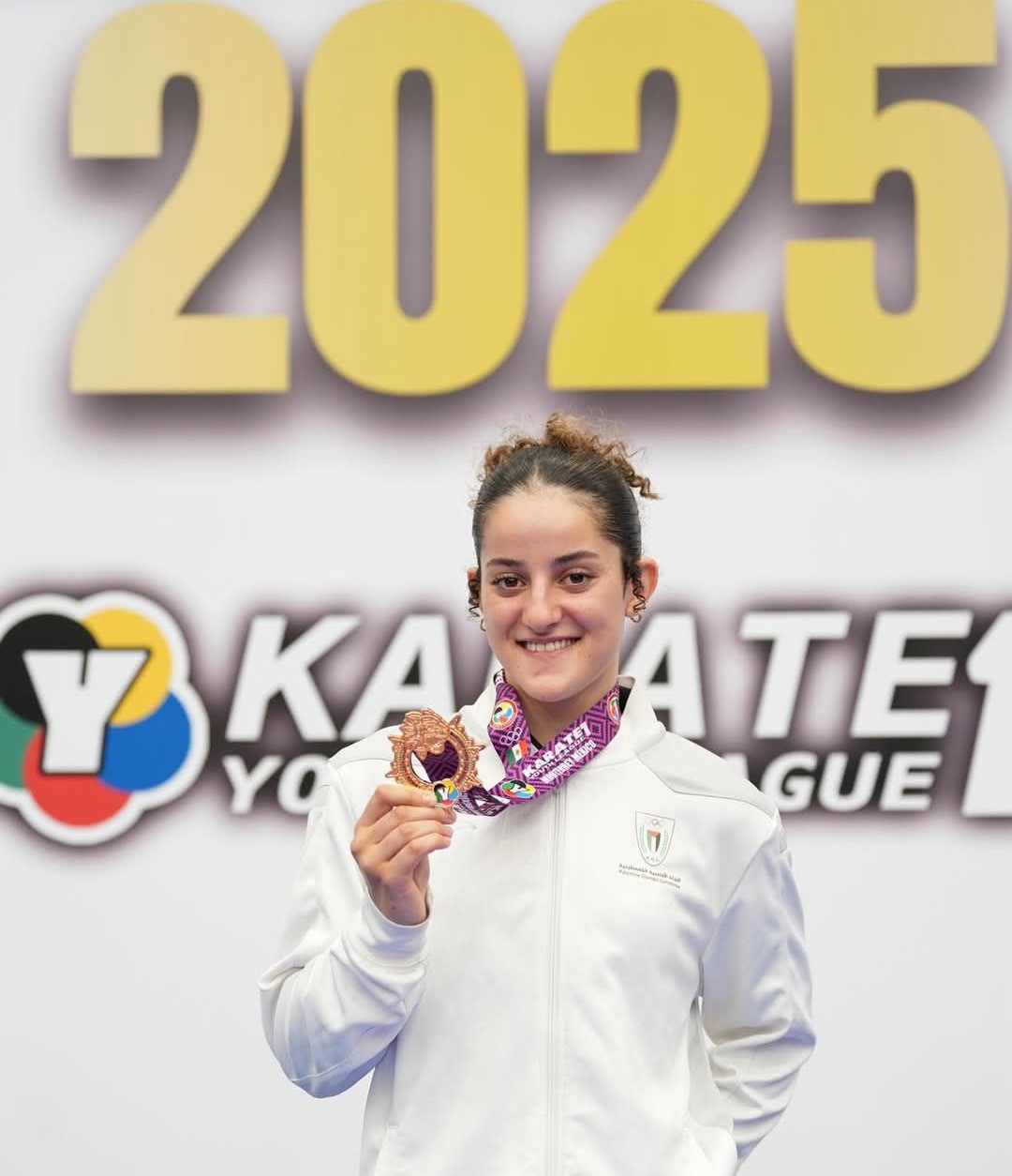 القدس 9-8-2025 وفا- تُوجت لاعبة منتخبنا الوطني للكاراتيه مريم بشارات، بذهبية الدوري العالمي للكاراتيه لفئة الشباب، الذي تقام منافساته في مدينة مونتيري بالمكسيك، بمشاركة أكثر من 800 لاعب ولاعبة، من 59 دولة حول العالم.