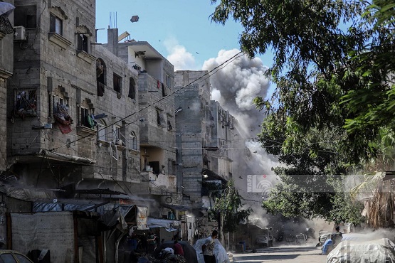 غزة 12-9-2025 وفا- تواصل قوات الاحتلال الإسرائيلي قصفها المكثف للعمارات السكنية والمنازل التي تؤوي آلاف المواطنين في مناطق غرب مدينة غزة، ومن بينهم نازحون فروا من أحياء شرق وشمال المدينة بعد تدمير مربعات سكنية واسعة فيها.