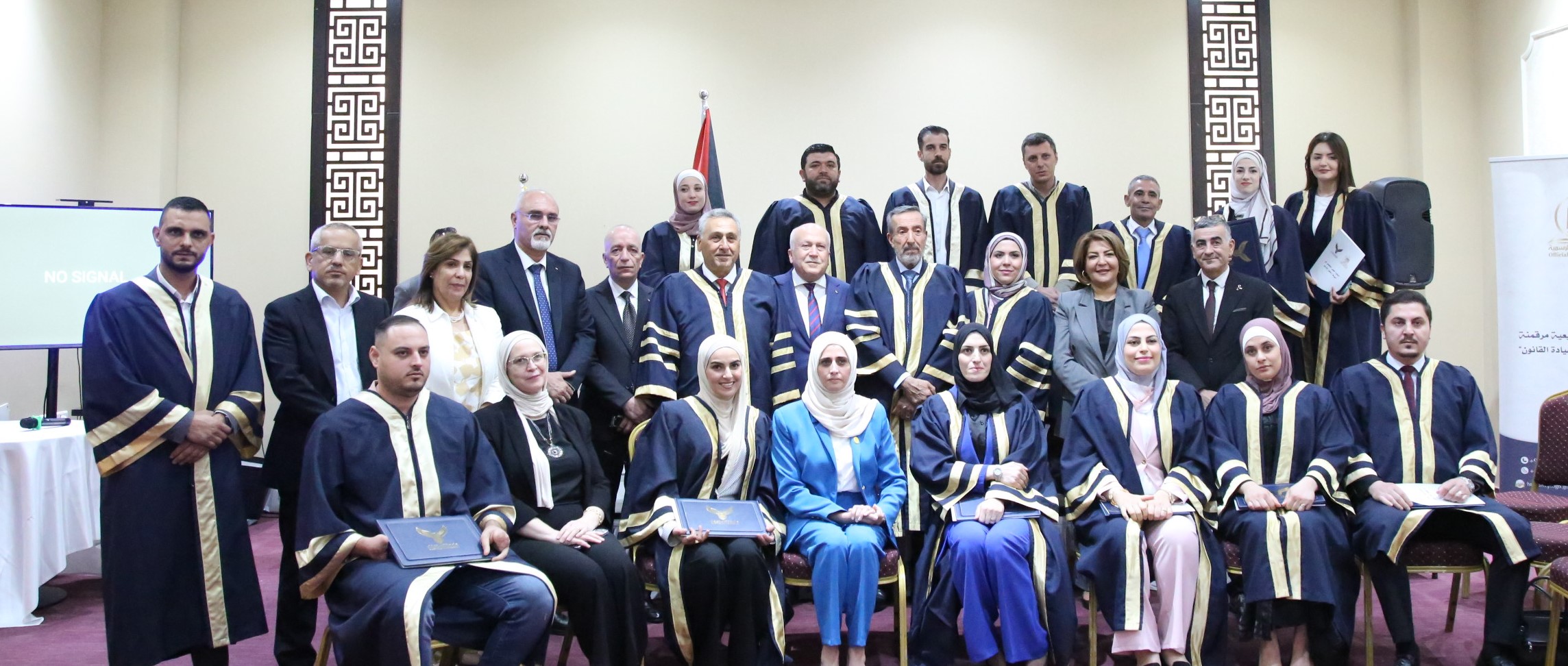 رام الله 2-9-2025 وفا- اختتم ديوان الجريدة الرسمية وجامعة الاستقلال، اليوم الثلاثاء، السنة الأولى من الدبلوم المهني المتخصص في الصياغة والتحليل التشريعي، وذلك بتخريج الدفعة الأولى منه، تحت رعاية رئيس الوزراء محمد مصطفى، وبحضور وزير العدل شرحبيل الزعيم، ممثلا عن رئيس الوزراء، ووزير الزراعة رزق سليمية، ووزير الاقتصاد الوطني محمد العامور ووزيرة شؤون المرأة منى الخليلي، ورئيس سلطة جودة البيئة نسرين التميمي، ورئيس سلطة الأراضي المستشار علاء التميمي، وعدد من الشخصيات الرسمية، وخريجي الدبلوم من المؤسسات الحكومية والهيئة التدريسية.