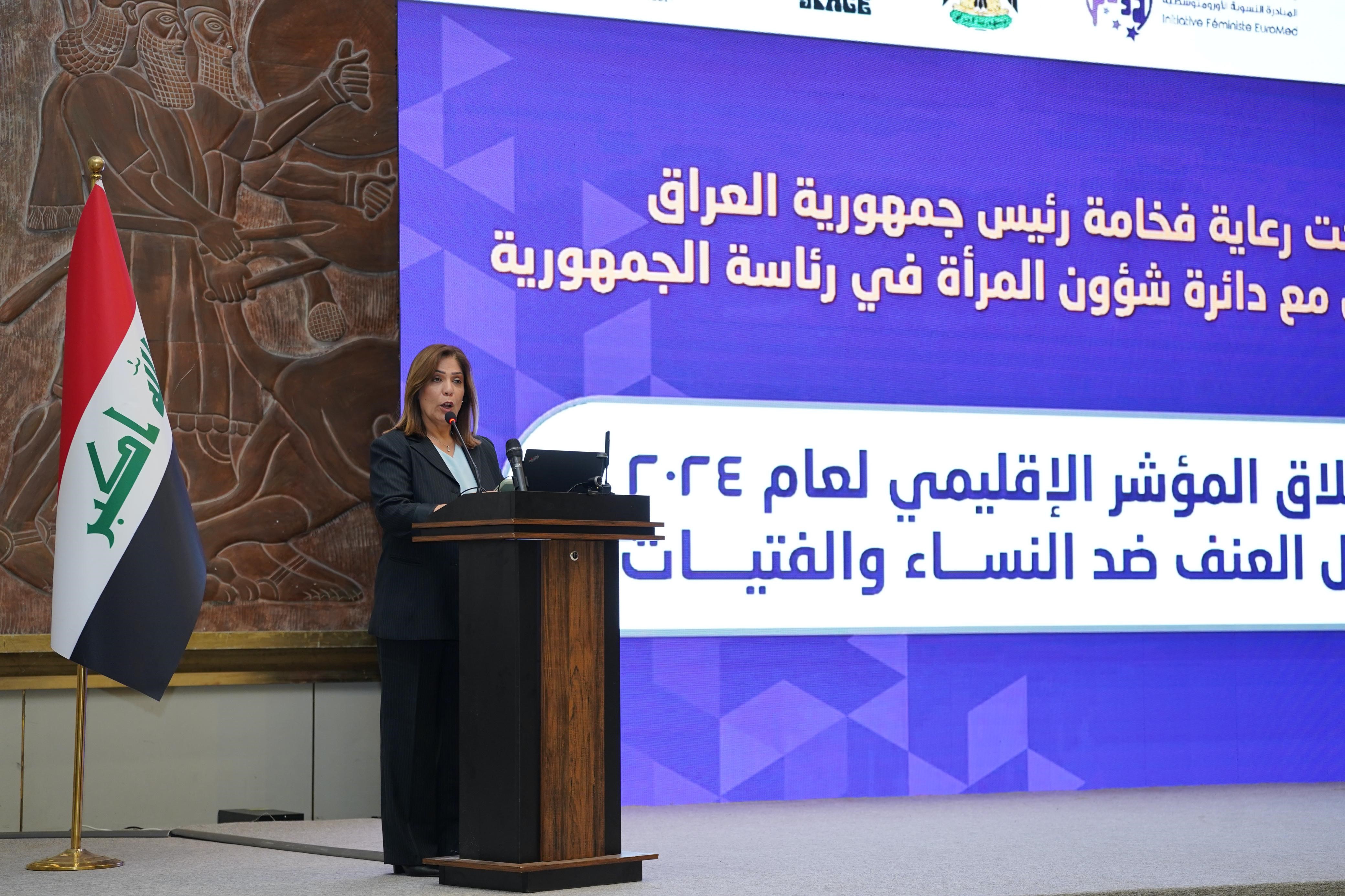 بغداد 22-9-2025 وفا- شاركت وزيرة شؤون المرأة منى الخليلي في أعمال المؤتمر الإقليمي لإطلاق المؤشر الإقليمي لعام 2024 حول العنف ضد النساء والفتيات، الذي عُقد في العاصمة العراقية بغداد، برعاية رئيس جمهورية العراق، وبالتعاون مع دائرة شؤون المرأة في رئاسة الجمهورية، والمبادرة النسوية الأورومتوسطية والمرصد الإقليمي، وبمشاركة وزراء وممثلي حكومات ومنظمات دولية وإقليمية من تسع دول عربية.