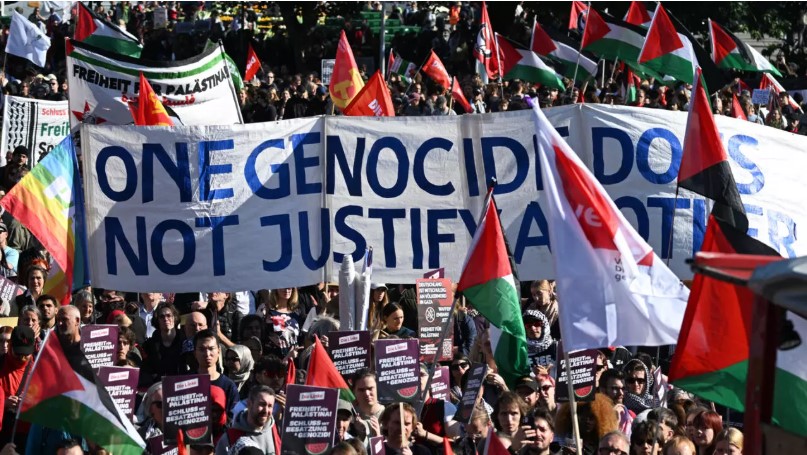 برلين 28-9-2025 وفا- شهدت العاصمة الألمانية برلين مظاهرة حاشدة شارك فيها عشرات الآلاف، رافعين أعلام فلسطين ولافتات تدعو إلى الحرية ووقف الحرب في غزة، في مشهد يعكس تحوّلا ملحوظا في المزاج الشعبي الألماني تجاه الموقف من إسرائيل.