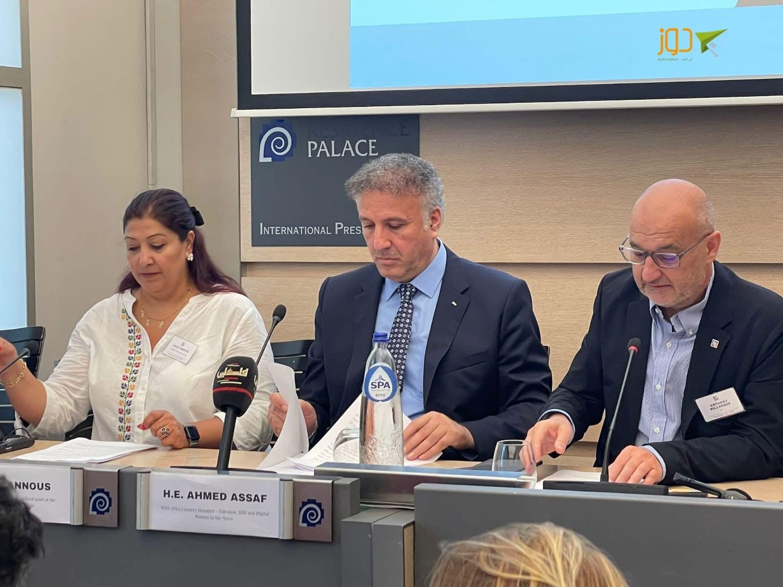 جاء ذلك خلال مشاركة الوزير عساف في مؤتمر عُقد في مقر الاتحاد الدولي للصحفيين في عاصمة الاتحاد الأوروبي بروكسل، حيث أعلن الاتحاد، بالتعاون مع نقابة الصحفيين الفلسطينيين، والهيئة التأسيسية لجمعية وسائل الإعلام الفلسطينية المستقلة، والصندوق العالمي لدعم الإعلام العمومي "إف بام"، إنشاء صندوق خاص لدعم الإعلام الفلسطيني.