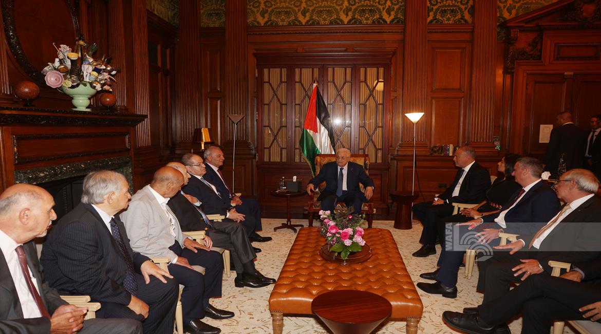 لندن 7-9-2025 وفا- التقى رئيس دولة فلسطين محمود عباس، الليلة، وفداً من الجالية الفلسطينية في المملكة المتحدة، وذلك على هامش زيارة سيادته الى العاصمة البريطانية لندن.