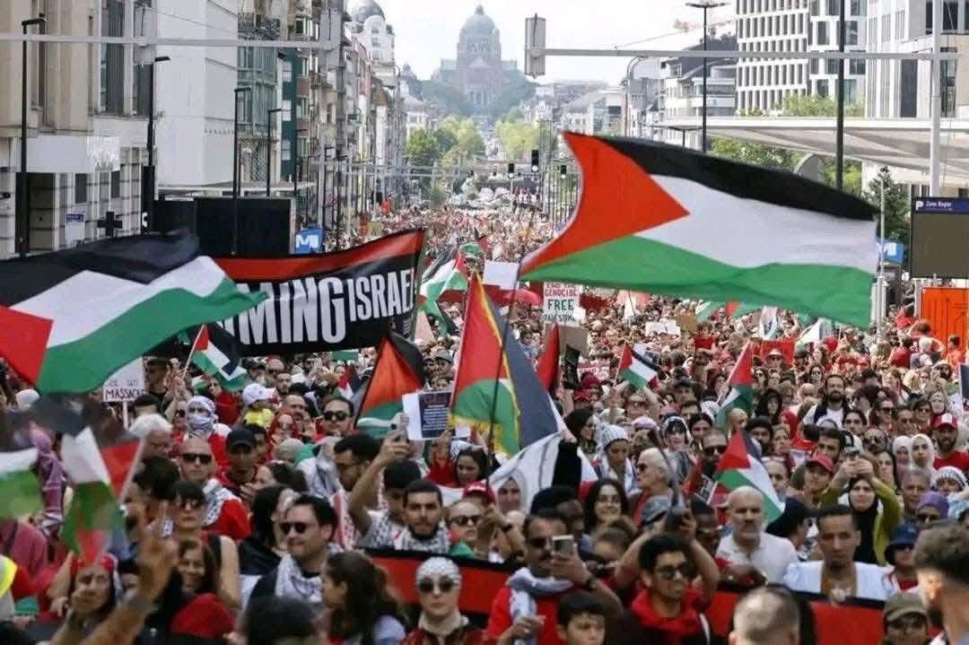 ضمت نحو 140 ألف متضامن: بعثة فلسطين في بروكسل تشارك في مسيرة "الخط الأحمر من أجل غزة"