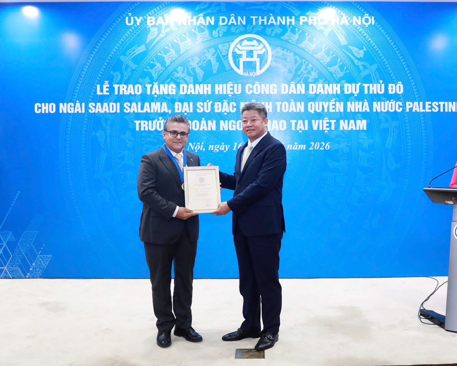 هانوي 16-1-2026 وفا- كرمت الجمهورية الفيتنامية، سفير دولة فلسطين لديها سعدي الطميزي، بمنحه مواطنة الشرف، تقديرا لإسهاماته في تعزيز علاقات الصداقة والتعاون بين البلدين، ولدوره في توطيد جسور التواصل الإنساني والثقافي بين الشعبين.