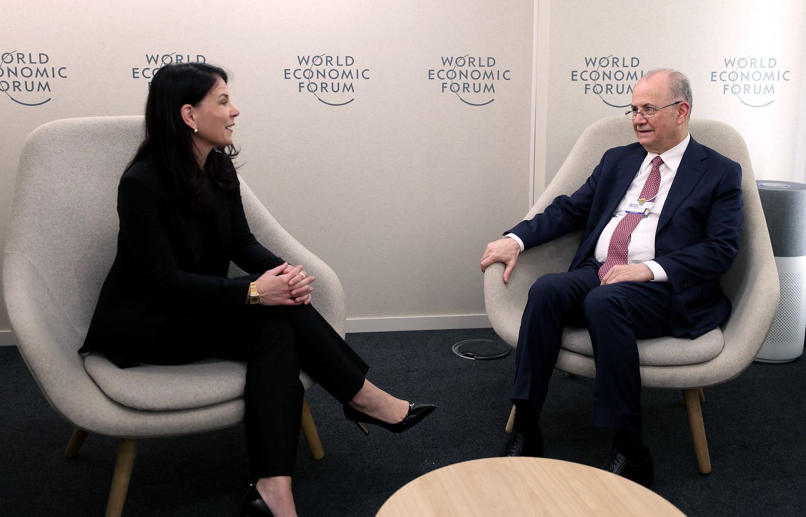 دافوس 20-1-2026 وفا- شدد رئيس الوزراء محمد مصطفى، خلال لقائه رئيسة الجمعية العامة للأمم المتحدة أنالينا بيربوك، على أن الحل الحقيقي للقضية الفلسطينية يكمن في إنهاء الاحتلال وتنفيذ حل الدولتين، والانتقال من الترتيبات المؤقتة في قطاع غزة إلى مسار سياسي واقتصادي واضح يضمن الاستقرار وإعادة الإعمار وتوحيد المؤسسات الفلسطينية تحت إطار نظام وقانون وسلاح واحد، وذلك على هامش أعمال منتدى دافوس الاقتصادي، اليوم الثلاثاء، بحضور سفير دولة فلسطين لدى سويسرا ومنظمات الأمم المتحدة في جنيف إبراهيم خريشي.