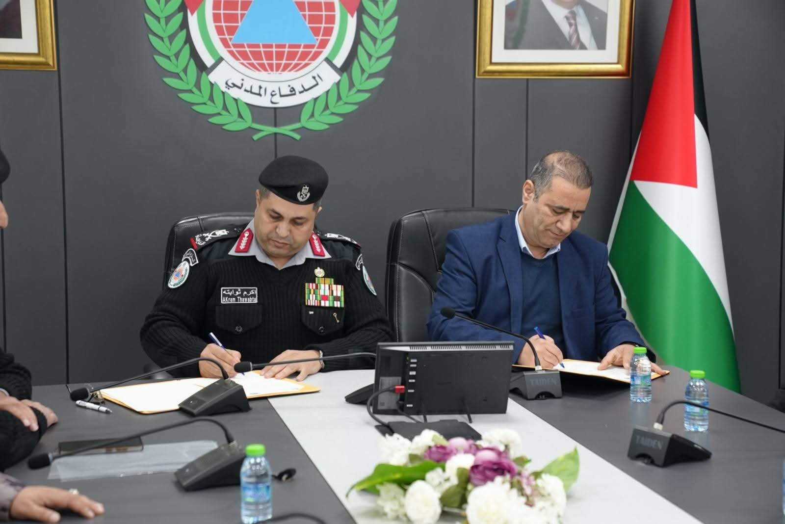 رام الله 28-1-2026 وفا- وقّع مدير عام الدفاع المدني اللواء ركن أكرم ثوابتة، اليوم الأربعاء، مذكرة تفاهم مع الشركة الفلسطينية لنقل الكهرباء ممثلة برئيس مجلس الإدارة عماد بريك، في قاعة المديرية العامة للدفاع المدني، تهدف إلى تعزيز إجراءات الوقاية والسلامة العامة بمرافق نقل الطاقة الكهربائية، وتدريب الطواقم وحماية البنية التحتية الحيوية لقطاع الكهرباء.