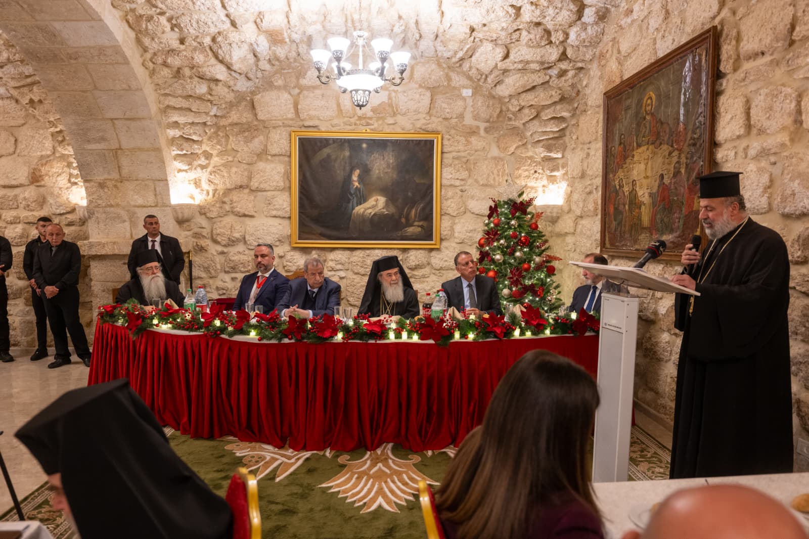 وحضر العشاء بطريرك القدس وسائرِ أعمالِ فلسطينَ والأردن ثيوفيلوس الثالث، وممثل جلالة الملك عبد الله الثاني، وزير الداخلية الأردني مازن الفراية، وسفير المملكة الأردنية الهاشمية لدى دولة فلسطين عصام البدور، وممثلي الوزارات والمؤسسات الرسمية، والأجهزة الأمنية، والسلك الدبلوماسي والعديد من المطارنة والشخصيات الاعتبارية.