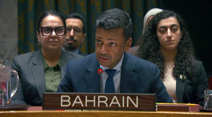 وقال المندوب الدائم لمملكة البحرين لدى الأمم المتحدة جمال فارس الرويعي إن اجتماع مجلس الأمن يأتي في ظل استمرار الصراعات وتصاعد التوتر في منطقة الشرق الأوسط والجهود المستمرة للتوصل إلى سلام شامل مستدام ينهي حالة العنف، بما في ذلك اجتماع مجلس السلام في واشنطن.
