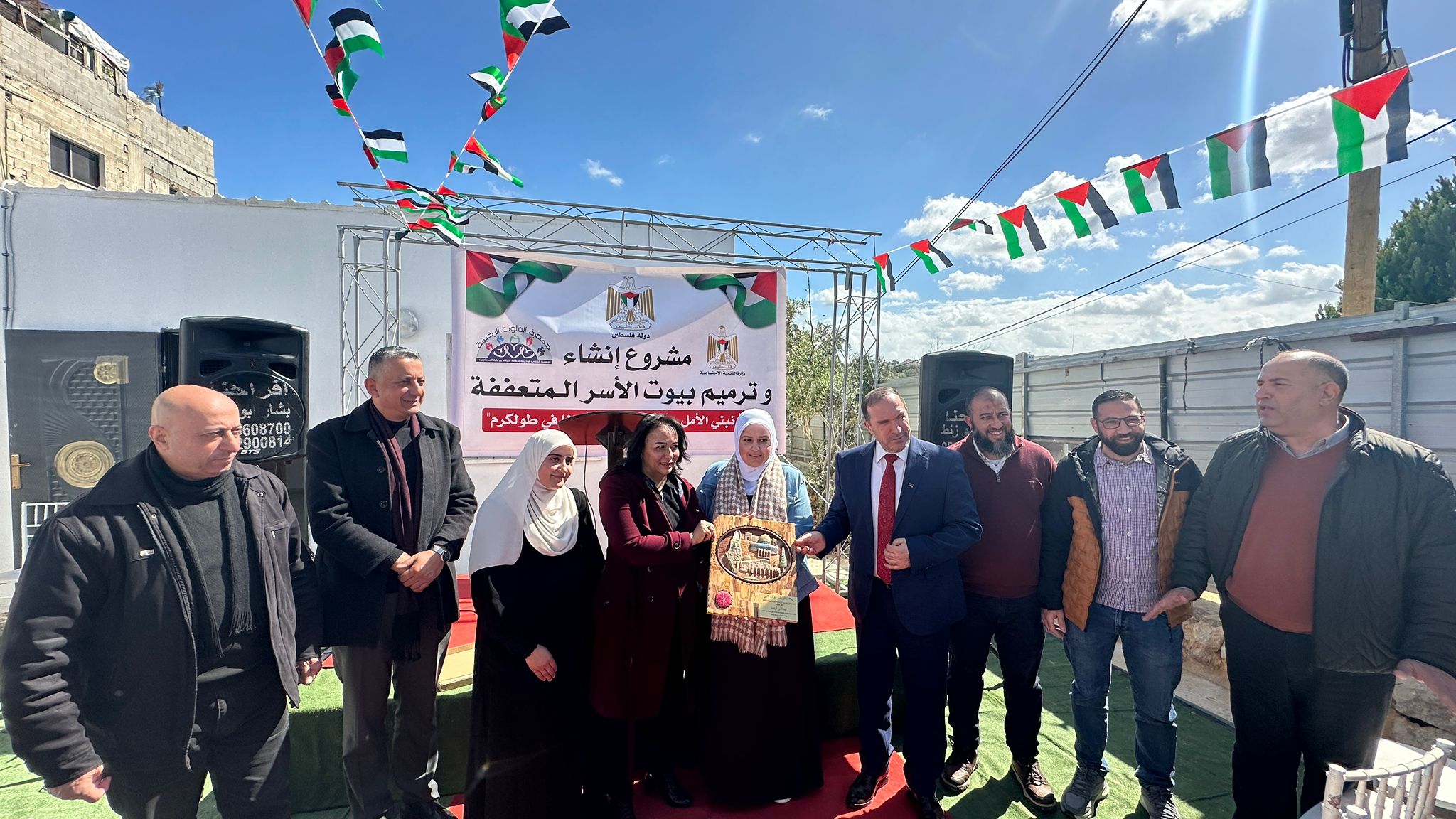 ونقل المحافظ كميل تحيات الرئيس محمود عباس، مؤكدا أهمية إنجاز هذا المشروع الذي من شأنه أن يخفف، ولو جزئياً، عن العائلة من خلال إنشاء ثلاثة منازل توفّر لها الاستقرار والعيش الكريم.