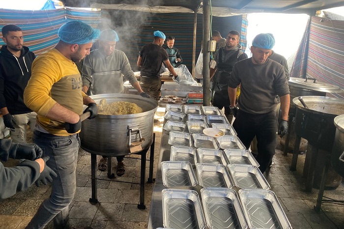يقول عدنان لـ "وفا": "بدأنا بإمكانيات بسيطة جدًا، بمعدات ومطبخ متواضعين، لكن الحاجة كانت أكبر من كل الإمكانيات. كنّا نطهو ما يتيسر ونوزعه على الخيام القريبة". ومع الوقت، تيسرت بعض الأمور، وتعاقد مع عدد من المؤسسات والأفراد لتجهيز وجبات تُقدَّم للنازحين، خصوصًا في شهر رمضان المبارك.