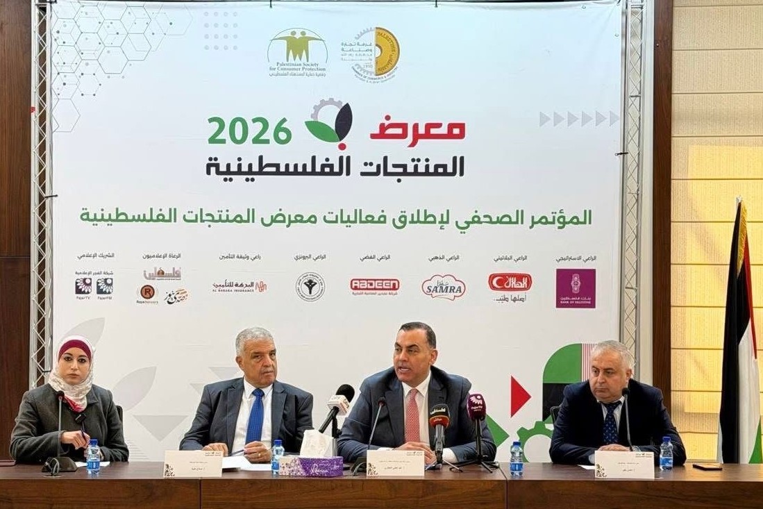 رام الله 4-2-2026 وفا- أطلقت غرفة تجارة وصناعة محافظة رام الله والبيرة وجمعية حماية المستهلك الفلسطيني، اليوم الأربعاء، فعاليات معرض المنتجات الفلسطينية بنسخته الأولى، بالشراكة مع محافظة رام الله والبيرة ووزارة الاقتصاد الوطني، ووزارة الصناعة الفلسطينية، واتحاد الغرف التجارية الصناعية الفلسطينية.