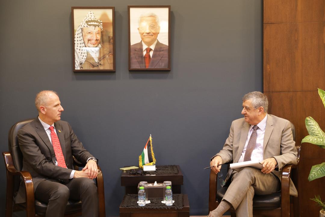 رام الله 5-2-2026 وفا- بحث وزير الأشغال العامة والإسكان عاهد فائق بسيسو، مع ممثل كندا لدى دولة فلسطين غراهام داتيلز، آليات التعاون المشترك في قضايا عدة أبرزها إعادة الإعمار، لا سيما في قطاع غزة وشمال الضفة الغربية، إلى جانب مناقشة آليات إدخال المواد وتطوير آليات الوزارة، وكذلك مجالات عمل الوزارة في الطرق والإسكان لذوي الدخل المحدود.