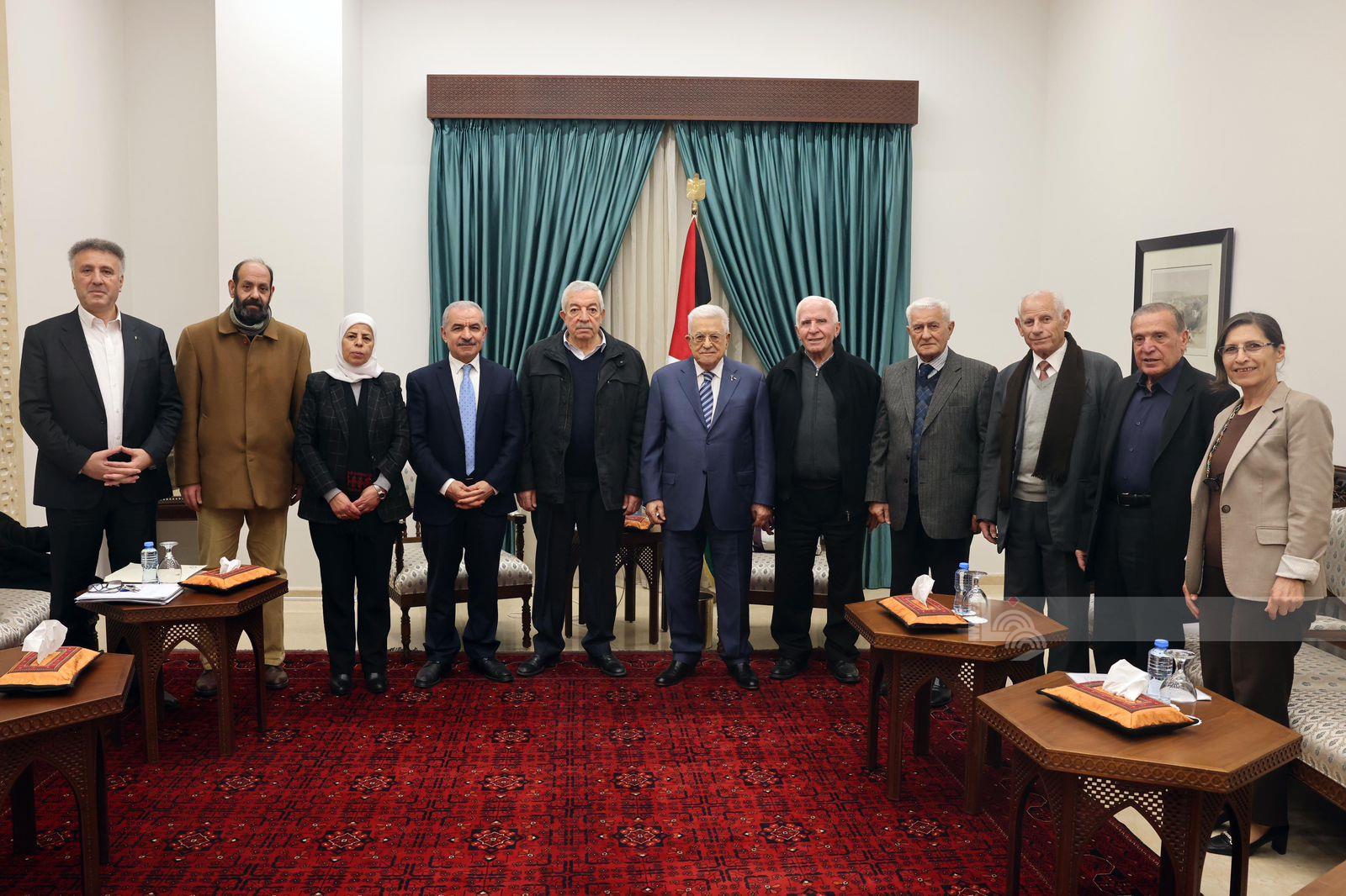 رام الله 26-3-2026 وفا- استقبل رئيس دولة فلسطين محمود عباس، في مقر الرئاسة بمدينة رام الله، مساء اليوم الخميس، لجنة متابعة الانتخابات المحلية.