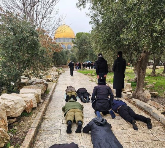 مستعمرون يؤدون طقوسا تلمودية من بينها ما يُعرف بـ"السجود الملحمي" داخل باحات الأقصى