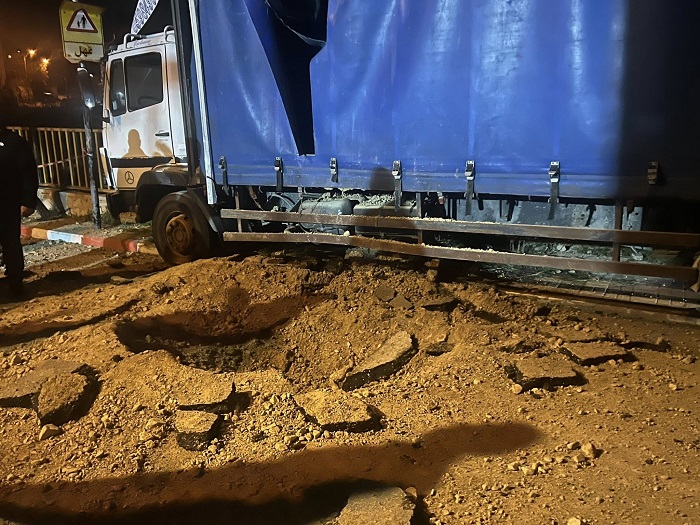 من مكان سقوط شظايا صاروخ في بلدة بيرزيت شمال رام الله