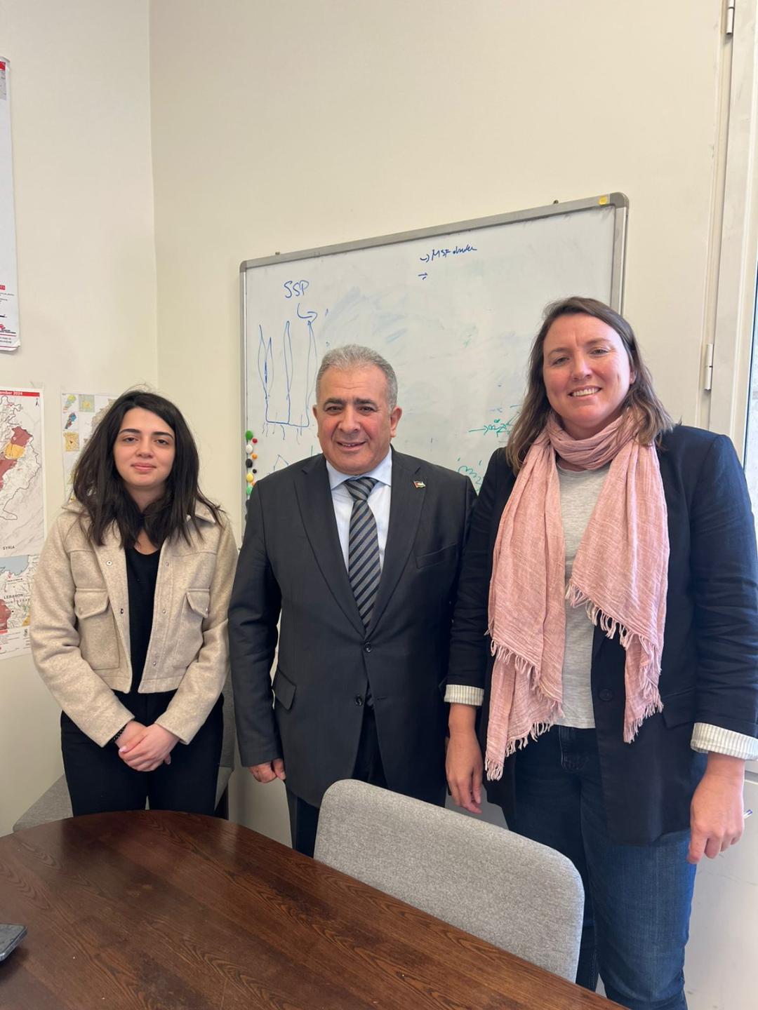 بيروت 9-3-2026 وفا- التقى سفير دولة فلسطين لدى الجمهورية اللبنانية محمد الأسعد، رئيسة بعثة منظمة أطباء بلا حدود في لبنان لو كورماك، بحضور مدير جمعية الهلال الأحمر الفلسطيني فرع لبنان محمد حمود.