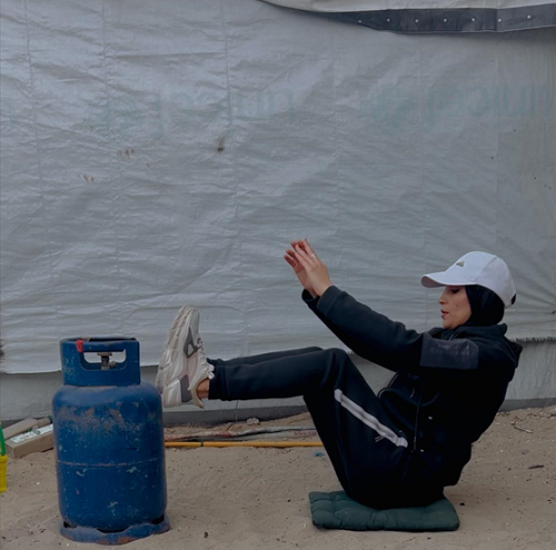 وفي هذا السياق، تقول الشابة كارول محمد (38 عامًا)، وهي من سكان رفح ونازحة حاليًا في مواصي خان يونس، إنها تعرفت إلى المدربة إيمان المغير منذ ما قبل الحرب، واعتادت التدريب في النادي الخاص بها، واستمرت معها حتى بعد إغلاقه من خلال متابعة التمارين عبر مواقع التواصل الاجتماعي.